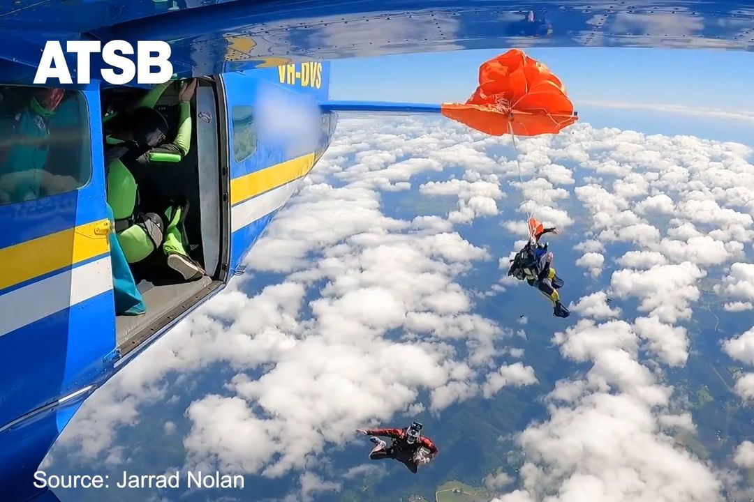 Un parașutist sportiv australian a oferit niște imagini terifiante, după ce a rămas agățat de coada avionului din care zburase accidental cu câteva secunde mai devreme.