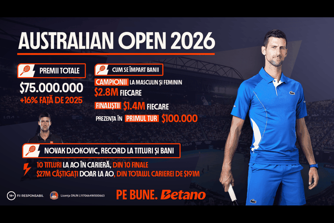 Primul mare eveniment sportiv al anului 2026 este, fără doar și poate, Australian Open, cel dintâi turneu major al calendarului în tenisul mondial profesionist. Ajuns la 38 de ani, fostul lider mondial Novak Djokovic nu are de gând să agațe prea curând racheta în cui și continuă să caute titlul de Mare Șlem cu numărul 25 din carieră.