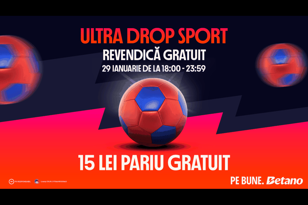 Seara Europa League vine cu un cadou pentru microbiști. Pe 29 ianuarie, între 18:00 și 23:59, Betano le oferă tuturor utilizatorilor activi un Pariu Gratuit de 15 lei, ideal pentru cei care vor să simtă la maximum adrenalina duelului FCSB – Fenerbahce.