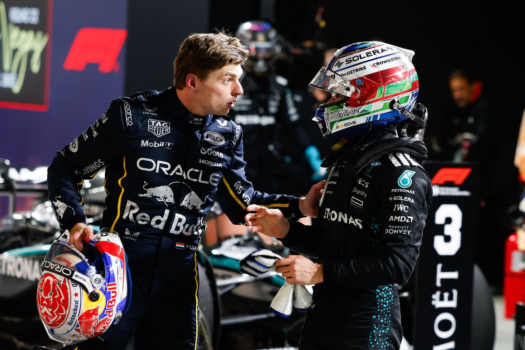 George Russell și Max Verstappen // FOTO: Imago Images„Probabil că fanii și publicul se așteptau la o luptă Mercedes versus McLaren, deoarece se anticipa că Mercedes va avea clar cea mai bună unitate de putere.