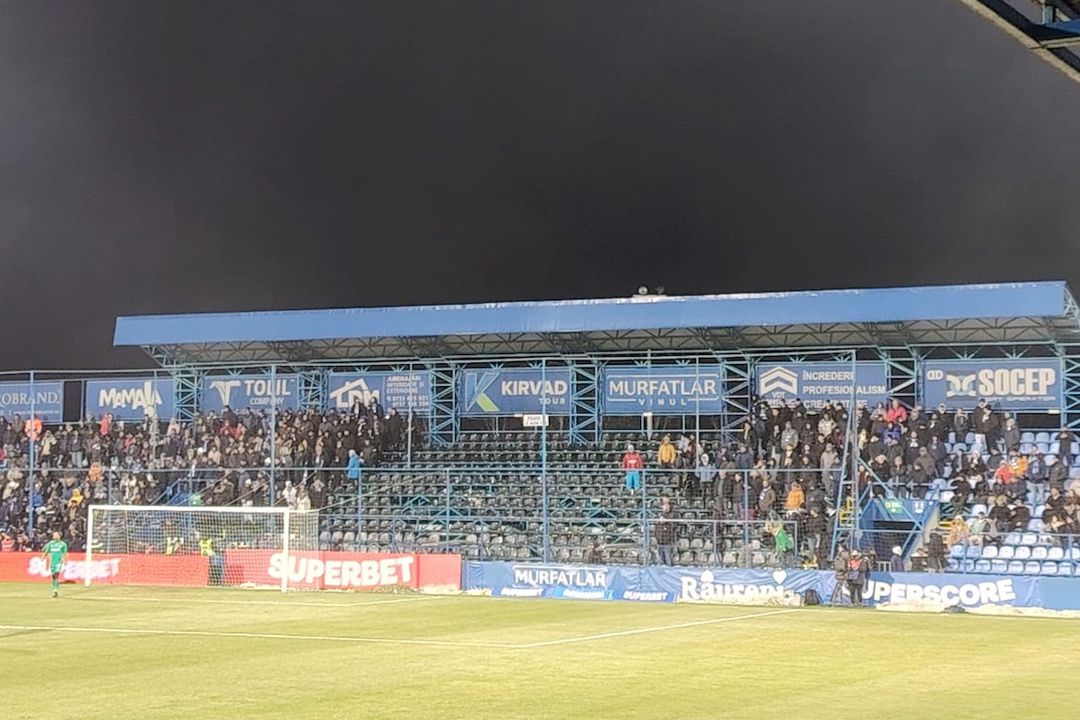 Apoi, prin minutul 15, o parte din fanii de la peluză au părăsit stadionul. Și nu au mai revenit, iar în acea zonă au rămas doar câțiva spectatori, fără membrii din Peluza Marină.