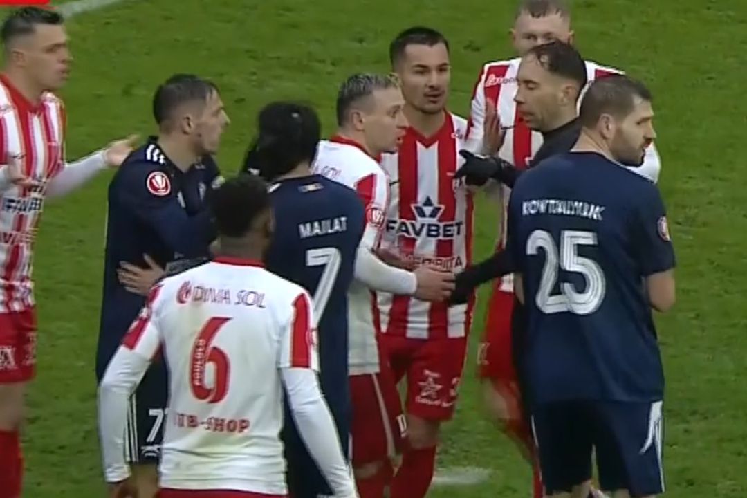 Poulolo, în alb-roșu, intervine cu întârziere / FOTO: Captură @Prima Sport 1Porumboiu: „A fost penalty în ambele faze!”