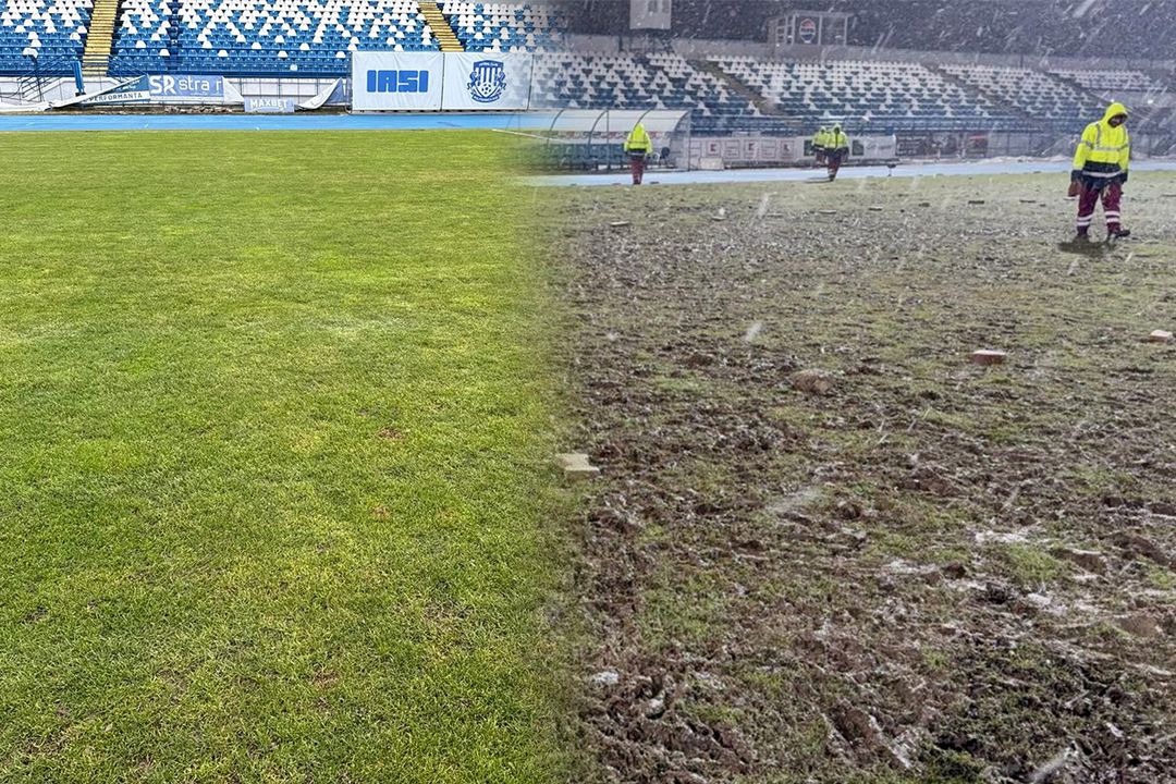 Drept urmare, aseară, după meci, terenul, impecabil joi când s-au scos foliile de protecție de pe acesta, arăta ca un câmp arabil.
