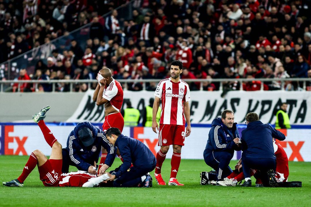 Jucătorii lui Olympiakos, Panos Retsos și Lorenzo Pirola, s-au accidentat serios după o coliziune teribilă, cap în cap, în meciul cu Bayer Leverkusen (2-2).