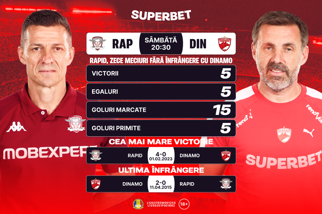 Etapa a 28-a a Superligii stă sub semnul derby-ului dintre Rapid și Dinamo și duce mai departe lupta pentru obținerea unuia dintre cele șase locuri din play-off-ul care va decide campioana. Live pe Superbet alături de sute de opțiuni la pariuri sportive, Streaming Exclusiv, SuperPariuri, BetBuilder, SuperSub și SuperAvantaj!