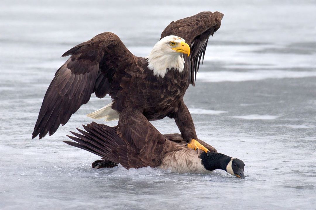 Postarea publicată pe rețelele de socializare prezintă un vultur pleșuv, simbolul SUA, care pare să atace o gâscă, animal asociat Canadei.