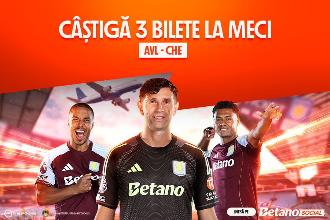 Pentru că meciurile se trăiesc mai intens pe stadion, Betano, partenerul celor de la Aston Villa te trimite pe Villa Park pentru confruntarea cu Chelsea. Joacă, dă share biletelor pe Betano Social și poți câștiga 3 tichete de acces general la meciul Aston Villa – Chelsea FC, pe 4 martie 2026 și un voucher de călătorie în valoare de 5.000 lei, care include: