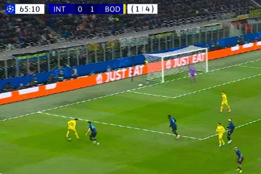 Dimarco a executat un corner din stânga, oaspeții au respins, Barella și-a încercat norocul cu un voleu. Încă o serie de respingeri, iar balonul a ajuns în posesia lui Hakon Evjen.