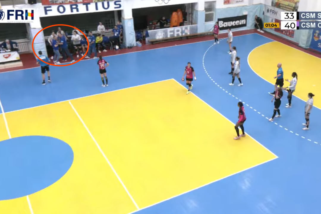 Corona Brașov a câștigat lejer meciul disputat vineri la Slatina, scor 40-33, iar în minutul 59.31, antrenorul ardelencelor, Bogdan Burcea a luat time-out.