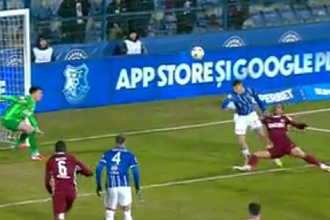 Florin Andrei nu a acordat penalty. Ionuț Coza și Sebastian Gheorghe au analizat faza în camera VAR și au decis să nu îl cheme pe „central” la monitor. A rămas repunere din 6 metri pentru clujeni, spre nemulțumirea publicului.