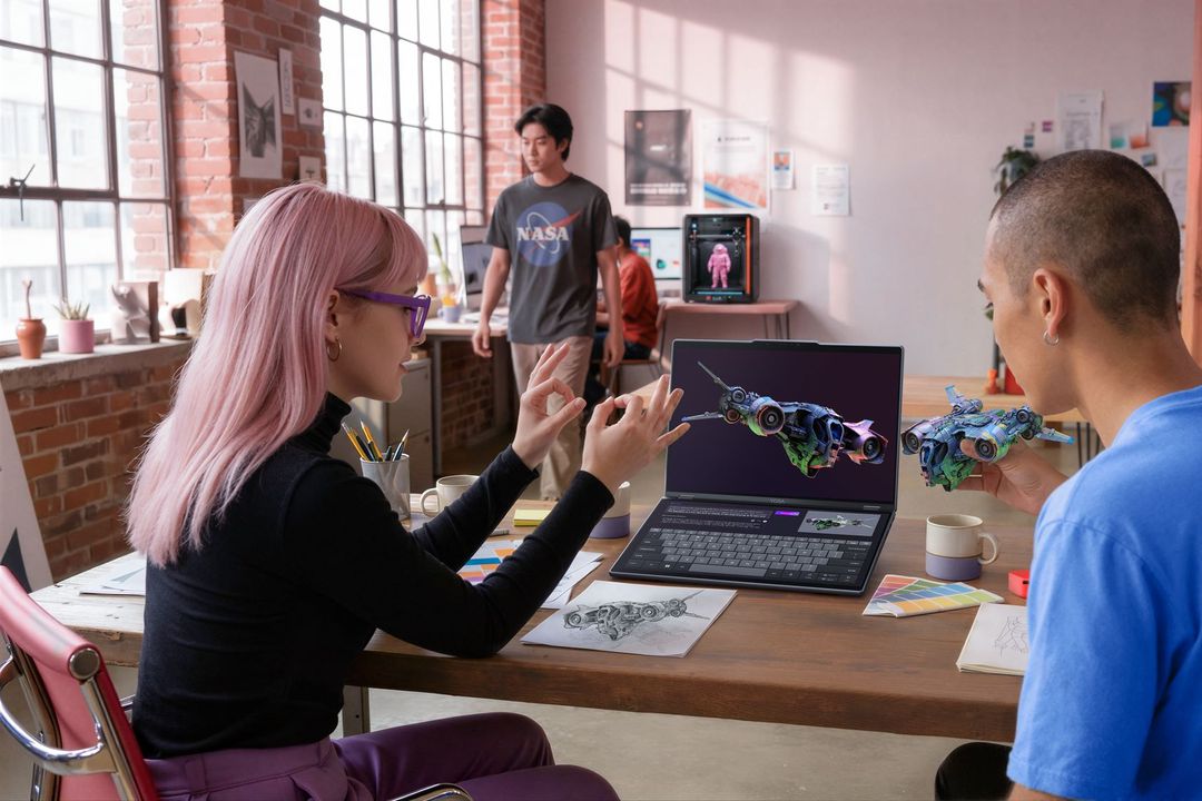 Creația 3D explodează odată cu interesul tot mai mare pentru experiențe interactive mai avansate, atât în zona consumer, cât și enterprise. Fie că lucrează în 3D profesional sau ca hobby, creatorii se bazează din ce în ce mai mult pe această tehnologie pentru a-și îndeplini obiectivele, ceea ce conduce la creșterea pieței globale a ecranelor 3D fără ochelari — estimată să se tripleze ca dimensiune între 2025 și 2032². Procesul creativ este eficientizat și de dezvoltarea AI ca instrument care automatizează editarea, randarea și o multitudine de alte sarcini, permițând utilizatorului să se concentreze pe creație.