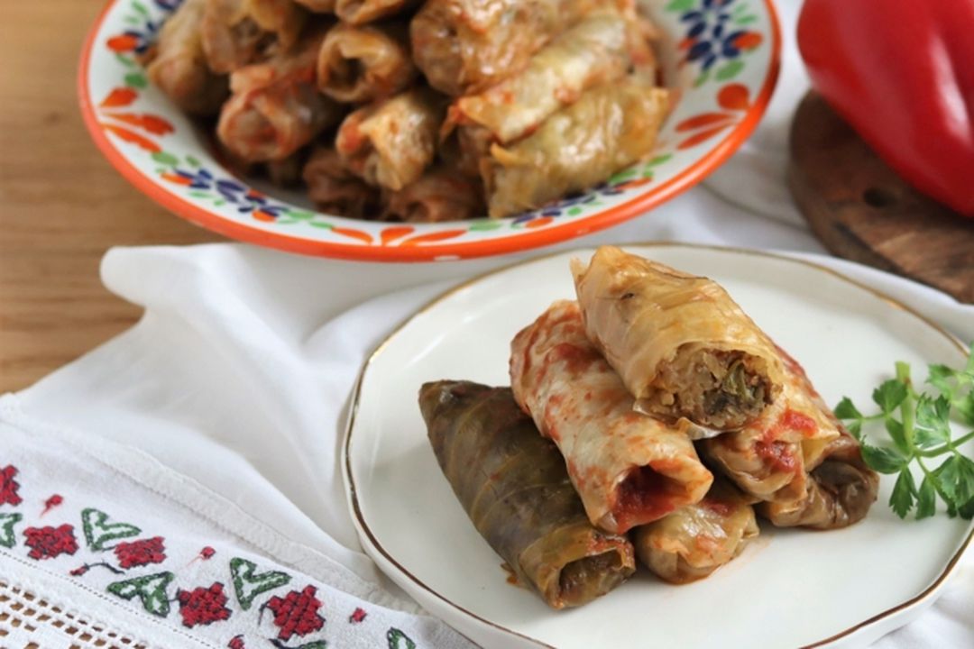 Sarmale de post, Chef Select, 350 g – 7,99 lei, preț redus cu 27% cu Lidl Plus + Croissant cu maia și gem de caise, 84 g – 2,19 lei, preț redus cu 29% cu Lidl Plus.