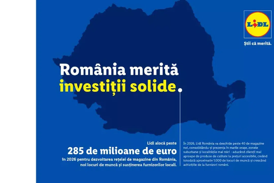 Lidl România continuă să investească în țara noastră și anunță pentru anul financiar 2026 (1 martie 2026 – 28 februarie 2027) un plan de expansiune de peste 285 milioane de euro, dedicat exclusiv extinderii rețelei naționale cu peste 40 de magazine noi. Bugetul este cu 56% mai mare față de cel alocat în 2025 și susține accelerarea planurilor de creștere la nivel național.