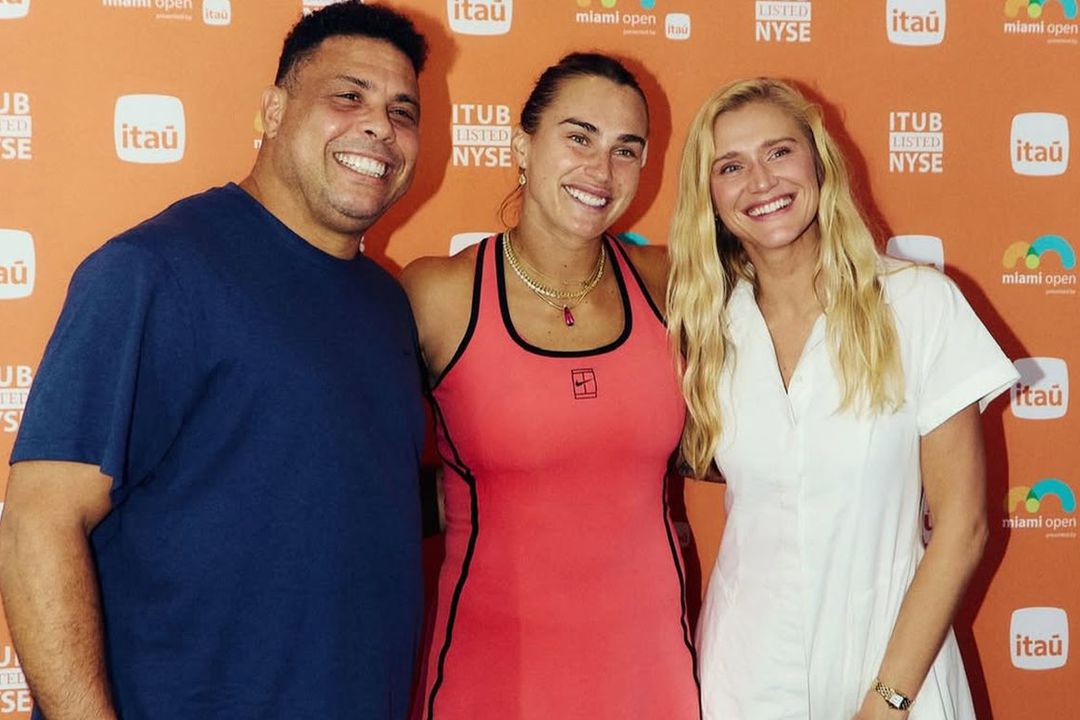 Brazilianul Ronaldo, unul dintre cei mai mari atacanți care au pășit vreodată pe terenul de fotbal, a fost la Miami împreună cu partenera lui de viață, Celina Locks. Cei doi au mers în culise pentru a se fotografia cu Sabalenka.