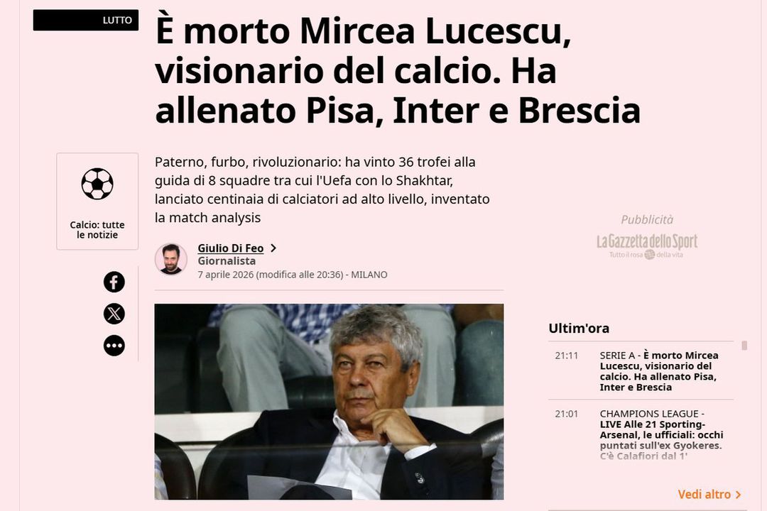 Jurnaliștii străini subliniază impactul uriaș pe care Lucescu l-a avut în fotbalul internațional. Publicațiile din Italia amintesc de perioada petrecută la Inter Milano și de contribuția sa la dezvoltarea unor jucători importanți.