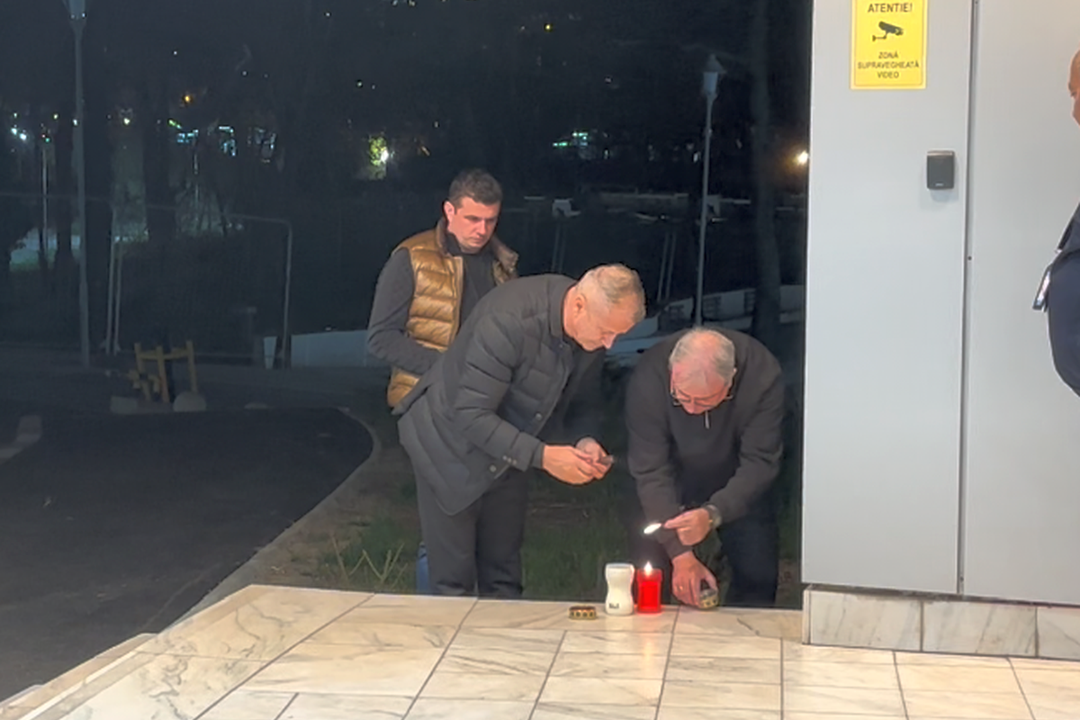 În fața unității medicale, au apărut deja primele candele în memoria celui care a fost Mircea Lucescu.