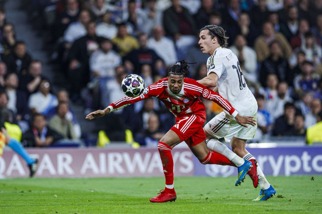 Prima dintre acestea s-a consumat în minutul 36, când mijlocașul Realului, Aurelien Tchouameni, i-a dărâmat ca la popice pe Michael Olise și pe Joshua Kimmich undeva în preajma careului madrilen.