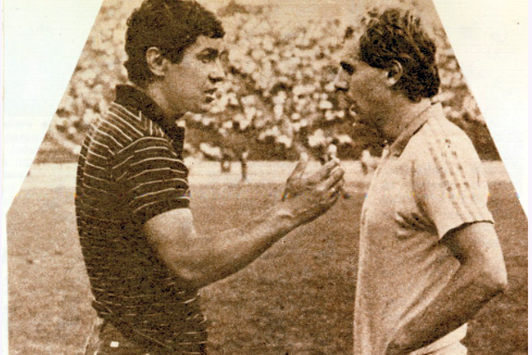 Ilie Balaci îi pasează lui Laszlo Boloni, care a catapultat balonul în plasa lui Zoff, la marea victorie din 1983, cu campioana mondială ItaliaLucescu anticipa și reușita alor noștri: „Îmi amintesc și conferința de presă dinaintea meciului. Atunci am spus: «Acest meci poate fi câștigat printr-o lovitură liberă». A fost declarația mea, pentru că știam foarte bine și care sunt punctele noastre forte, și unde sunt vulnerabili ei. Cunoșteam exact unde putem ajunge și ce trebuie să facem pentru a reuși”.