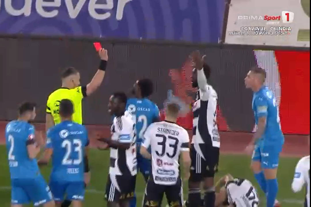 Istvan Kovacs nu a stat pe gânduri și poziționat foarte bine a arătat direct cartonașul roșu, indiscutabil, pentru jucătorul Craiovei, care a rămas câteva minute, la marginea terenului, nemișcat, nevenindu-i să creadă prostia făcută.
