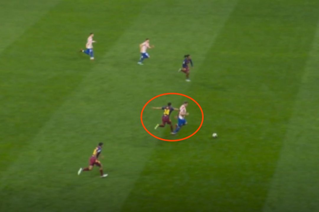„Minutul 80: Jucătorul cu numărul 24 de la Barcelona împiedică un adversar, privându-l de o ocazie clară de gol.”