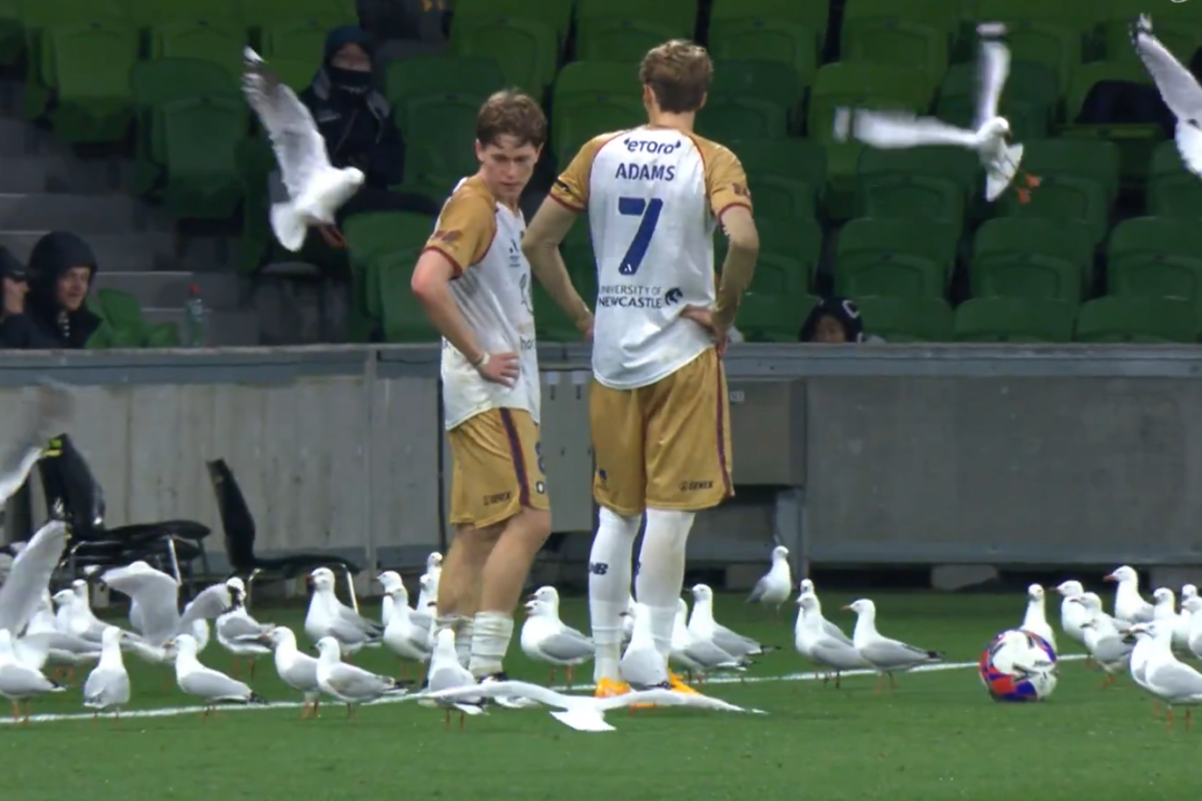 În minutul 90+1 al jocului din A-League, campionatul Australiei, o colonie uriașă de pescăruși a invadat gazonul, forțând arbitrul să oprească partida chiar în minutele de prelungire. Scenele au fost deopotrivă bizare și amuzante: jucătorii au încercat să alunge păsările, însă fără succes imediat, în timp ce spectatorii au reacționat între uimire și râsete.