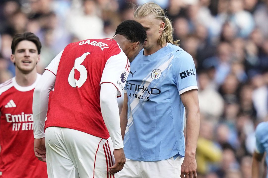Haaland a avut și el o zi grea, cu fundașul lui Arsenal, Gabriel Maghalaes. Duelul lor a început cu tricoul pe care brazilianul i l-a rupt și a trebuit să-l schimbe. Apoi, acesta l-a lovit cu capul în figură, dar atacantul lui Manchester City n-a căzut teatral, pentru a-o provoca eliminarea.