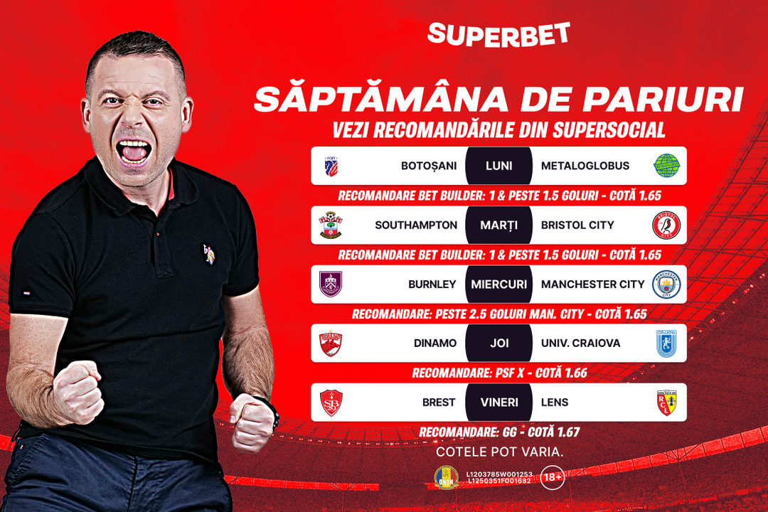 A început o nouă săptămână dedicată super meciurilor, iar inspirația pentru bilete verzi poate fi găsită deja în SuperSocial. Verifică recomandările lui Super Gigi și alege-ți favoriții!