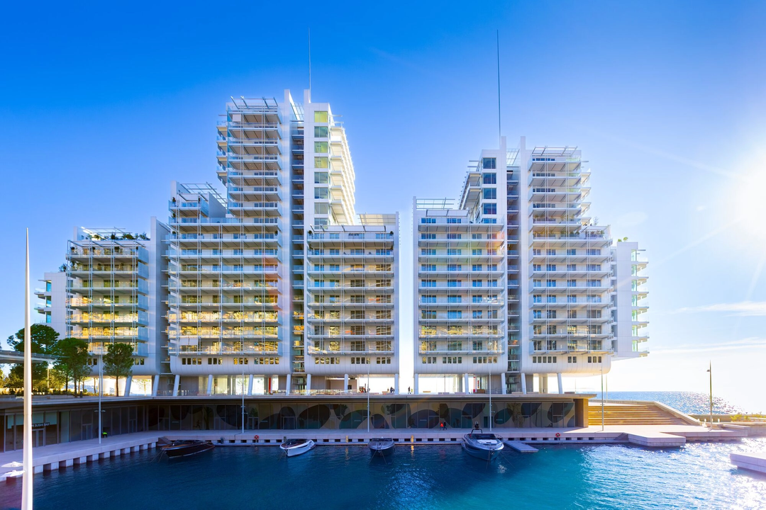 Cartierul Mareterra a fost construit pe parcursul unui deceniu pe teren câștigat din mare și include 114 vile de lux, case de oraș și apartamente dispuse în jurul unor grădini, a unui port și a unei promenade publice.