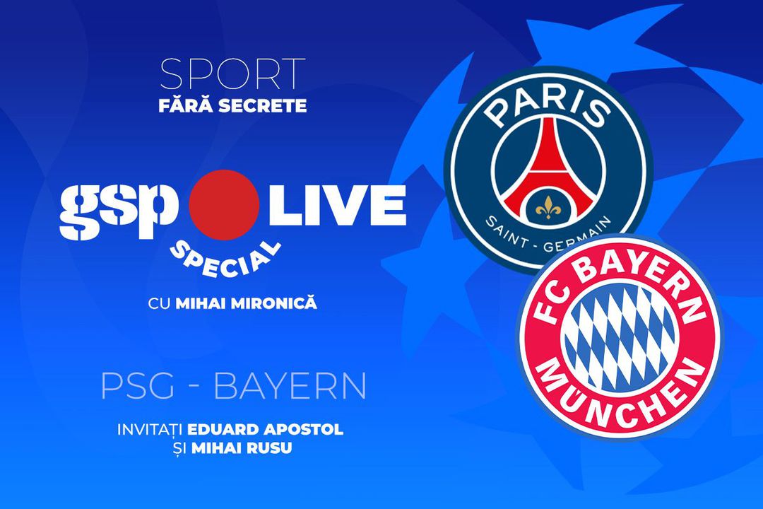 Ediția specială GSP Live revine marți, 28 aprilie, ora 21:30, cu prilejul meciului dintre PSG și Bayern Munchen, din cadrul semifinalelor Ligii Campionilor.
