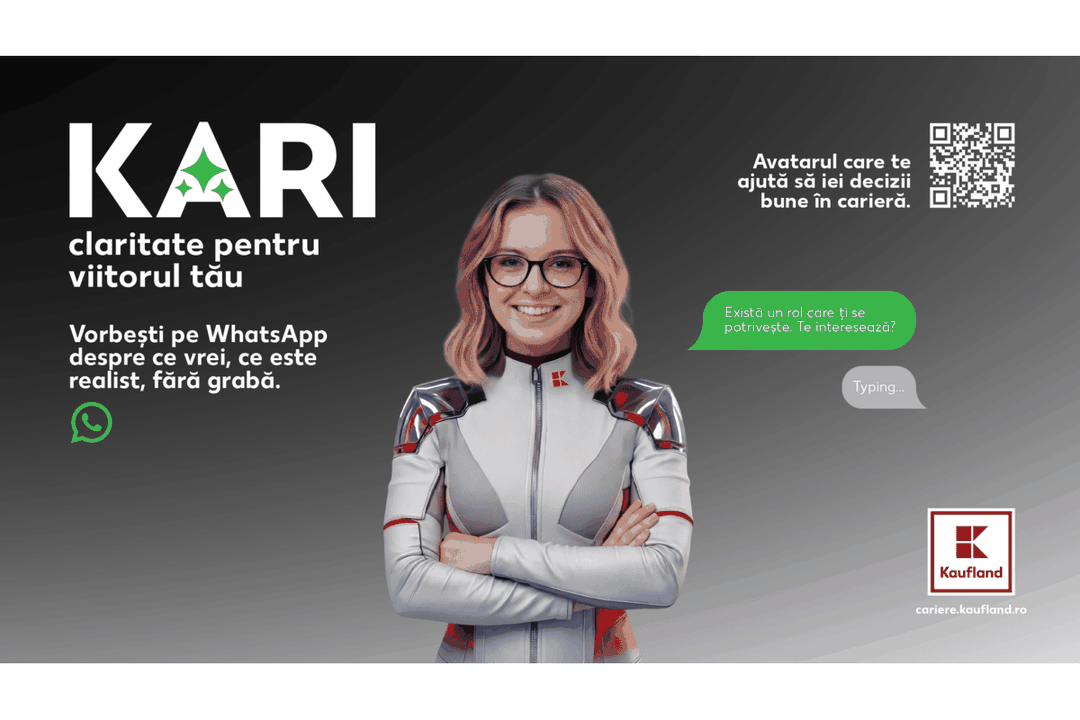 Kaufland România lansează Kari Era, un avatar AI de orientare profesională dedicat celor aflați la început de drum, disponibil prin conversație directă pe WhatsApp, dezvoltat în parteneriat cu Digital Nation, într-un context în care începutul de carieră este marcat de incertitudine pentru mulți tineri.